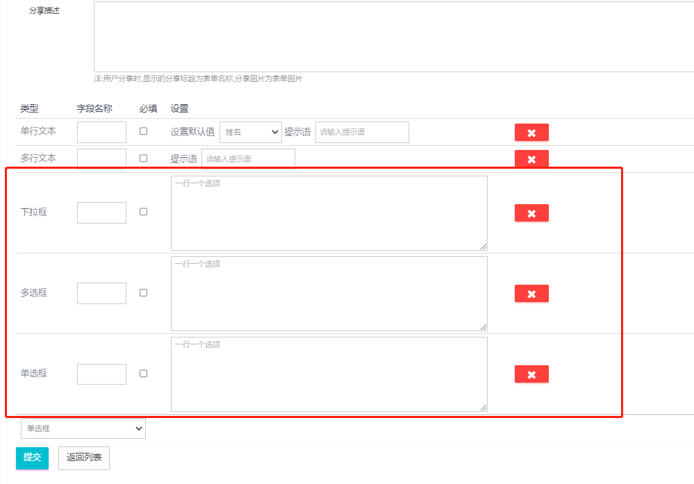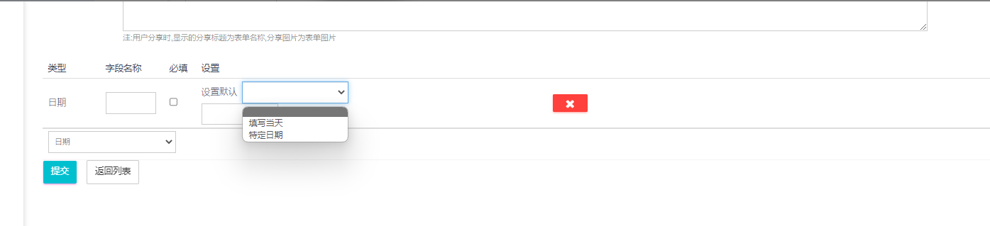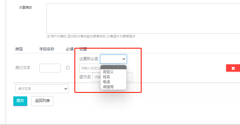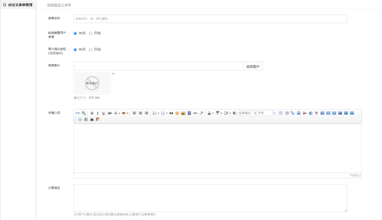 注:用户分享时,显示的分享标题为表单名称,分享图片为表单图片