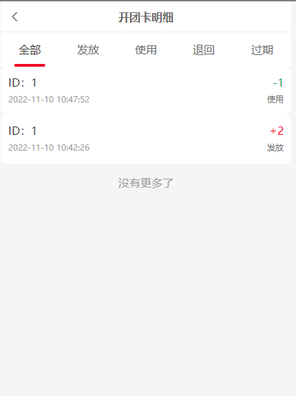 9, 开团卡明细:我的开团卡的变动明细,此处显示ID为开团卡的ID