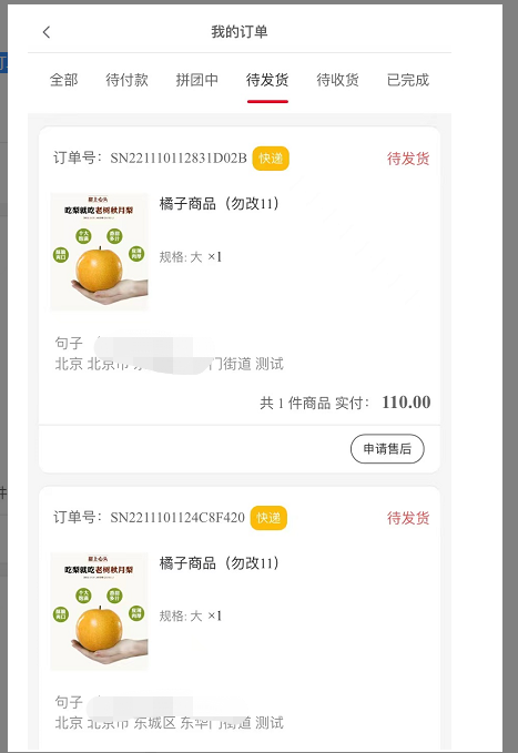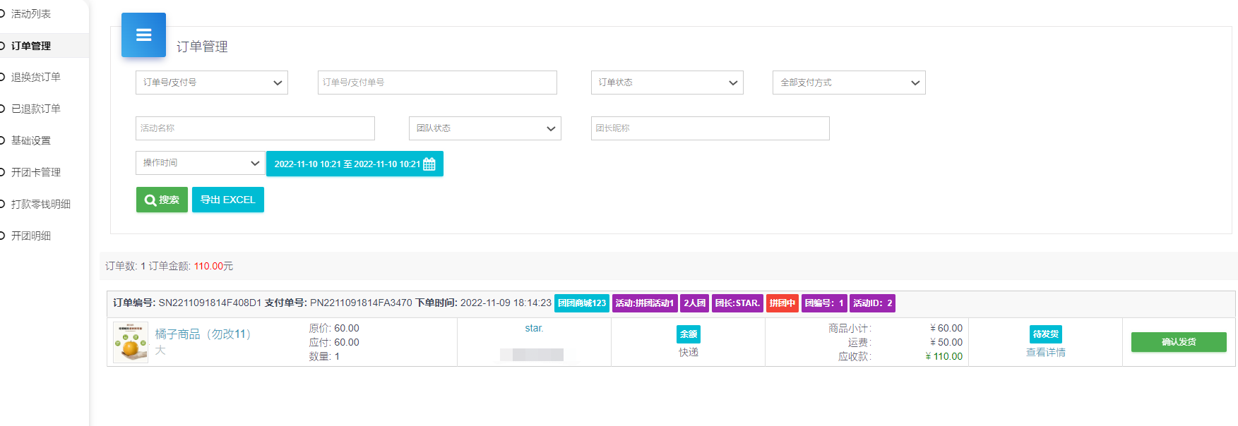 对拼团订单进行管理,对拼团的订单进行发货,确认收货等操作