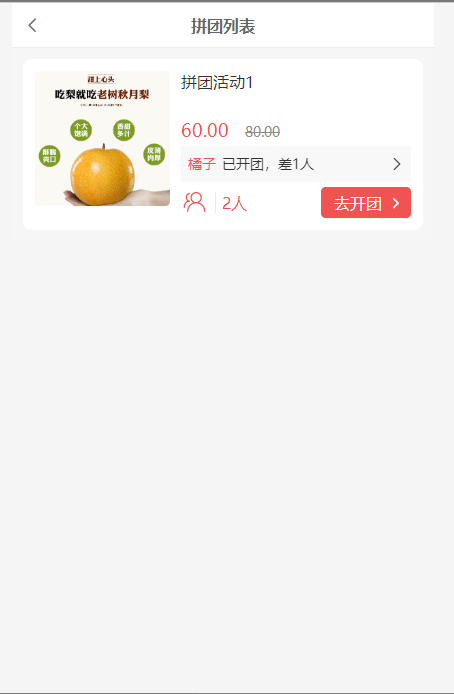 4, 开团列表:点击可查看该活动的开团列表
