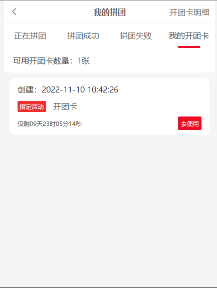 4, 开团卡开团,开团成功后跳转到我的拼团页面