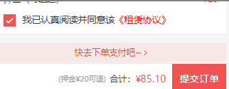 租赁协议:租赁订单下单时,需要勾选同意租赁协议。