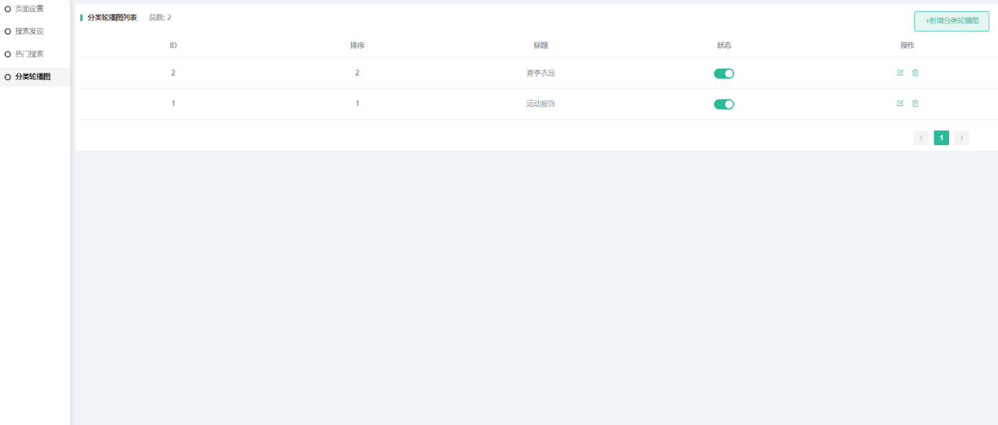 1、添加轮播图,设置排序、标题、图片(建议尺寸260*120)、小程序链接、是否开启