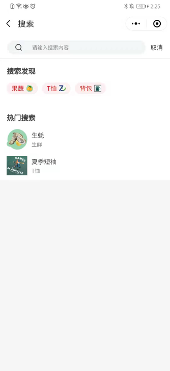 (一)页面设置,商品搜索页面增加搜索发现和热门搜索功能